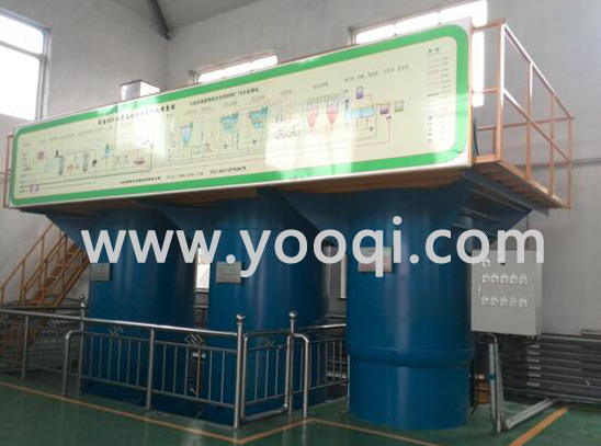 涌清吸附系统采用二级串联处理工艺,一级吸附系统出水经过其他处理工艺处理后进入到二级吸附系统。同时,新的吸附剂自动添加到二级吸附系统内,二级吸附饱和的吸附剂可提升到一级饱和吸附系统内,作为吸附剂继续使用,一级吸附饱和的吸附剂提升至废料池内排出系统外。